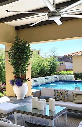 Installation of weather-rated ceiling fans designed specifically for alfresco areas, patios, verandas, and other outdoor living spaces.